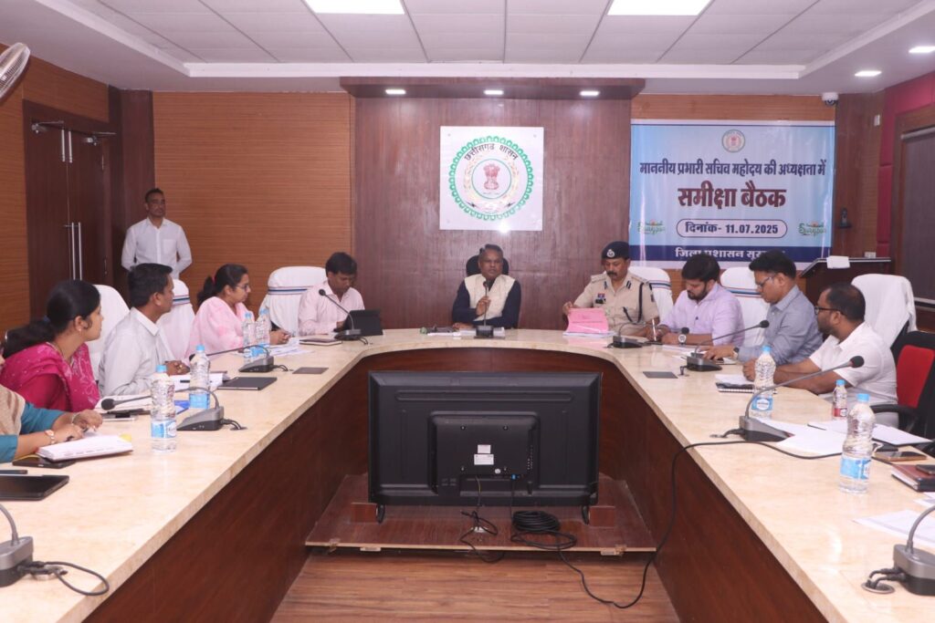 खेलसाय सिंह *सूरजपुर/11 जुलाई 2025/* राज्यपाल के सचिव व जिले के प्रभारी सचिव डॉ. सी आर प्रसन्ना की अध्यक्षता में आज जिला स्तरीय अधिकारियों की समीक्षा बैठक ली गई। बैठक में विभागवार अधिकारियों के परिचय पश्चात कलेक्टर श्री एस. जयवर्धन द्वारा जिले के संबंध में संक्षिप्त परिचय दिया गया।