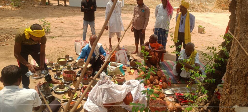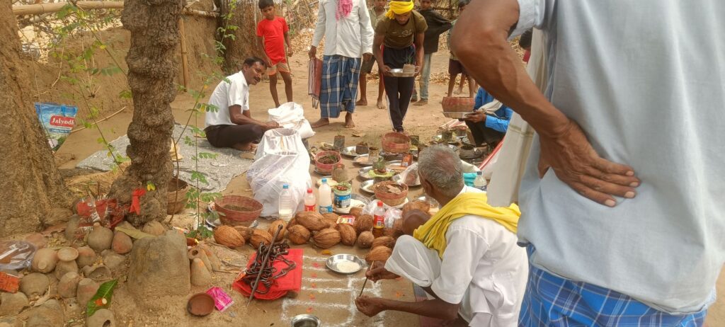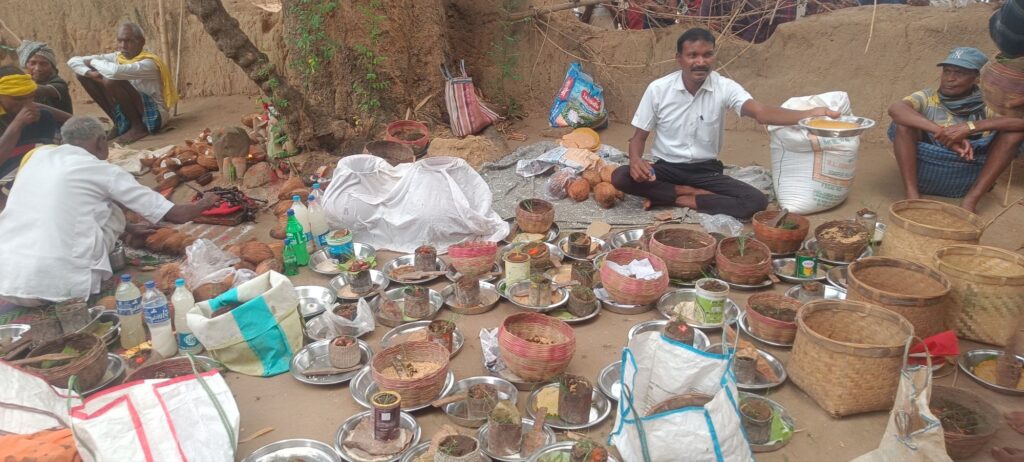 परंपरा के अनुसार गांव से चंदा इकट्ठा कर.. बैगा के लिए एक धोती,5नग नारियल, सिंदूर,घी चावल से बना कोसना दारू, जिसे राइस बियर भी कहा जाता है।जैसे पूजा की तमाम सामग्री लगती है..